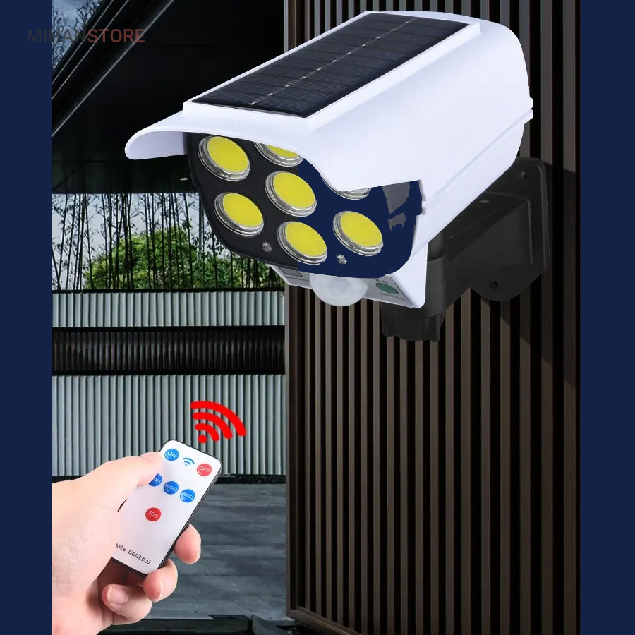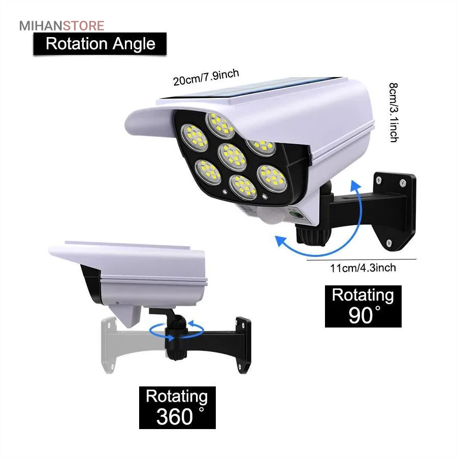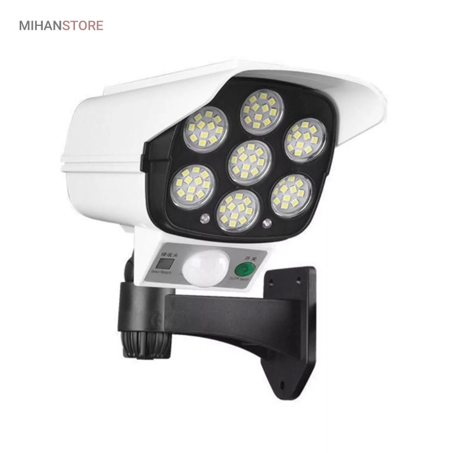 پروژکتور های خورشیدی طرح دوربین مدار بسته پروژکتور هایی هستند که حالت سیکوریتی دارند و حدودا بین 180 تا 200 وات نور تولید می کنند و شامل دو باتری لیتیومی 3.7 ولتی و پنل 3 واتی بزرگ هستند. دوربین های به کار رفته در این پروژکتور ها 2 باتری هستند و کیفیت بالاتری دارند در صورتی که دوربین های موجود در بازار به صورت تک باتری نیز وجود دارد. توانایی تابش 360 درجه دارند و پایه دارند. این نوع پروژکتور ها حتما باید زیر آفتاب باشند ولی در سایه نیز می توانند کار کنند اما نوری که ایجاد می کنند کمتر است و بازدهی کمتری دارند در این صورت باتری زودتر خراب می شود. بهتر است از این نوع پروژکتور ها در مکان های پر تردد استفاده شود. نور بسیار خوبی دارند و ارتفاع نصب آن ها بهتر است که بیش از 3 متر نباشد چرا که اگر سنسور PRD در ارتفاع بیش از 3 متر قرار گیرد حساسیت خود را از دست می دهد و قابلیتی که باید داشته باشد را ندارد. از روی پنل در این پروژکتور ها می توان متوجه خاموش یا روشن بودن آن شد به این صورت که مدار هایی درون آن وجود دارد که با تغییر ولتاژ از پنل و صفر شدن پنل، شب شدن یا تاریک شدن تشخیص داده می شود یعنی سنسور پتانسیلی دارند و همچنین دارای ریموت هستند. این نوع از پروژکتور ها را می توان زمان بندی کرد. این پروژکتور ها از پر فروش ترین جنس ها هستند.این یک لامپ دیواری خورشیدی با طراحی ظاهری دوربین مداربسته شبیه سازی است که می تواند در مکان های مختلف مانند دروازه ، راهرو ، حیاط و غیره نصب شود.